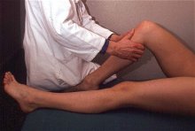 ____Le patient doit enlever chaussures et pantalon de façon à permettre un examen bilatéral comparatif. Il est installé confortablement sur la table d’examen en décubitus dorsal. Il faut qu’il soit suffisamment relâché en reposant en totalité sur cette table, y compris ses talons qui ne doivent pas dépasser.